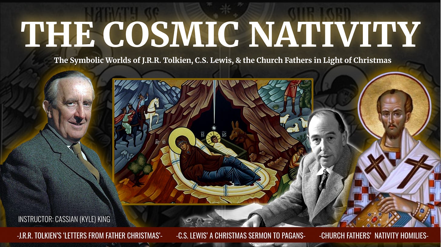 *Also, I have a mini-course that just began through St. Athanasius College where I am a ‘live’ instructor going through C.S. Lewis’ Christmas Sermon to Pagans, Tolkien’s ‘Letters from Father Christmas,’ and very rich Christmas homilies by the Church Fathers. Here is the link if you would like to join us this Monday: https://courses.bothanddesign.com/courses/cosmic-nativity/